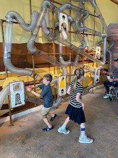 Next we went to the water works area. Adeline had a ball dumping water all over.